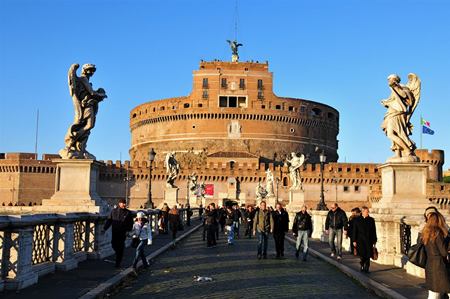 قلعه سنت آنجلو این بنای عجيب دایره ای شكل، در اصل مقبره امپراتور هادریان بوده است، اما در قرن ششم تبدیل به یك پایگاه مناسب برای پاپ ها شد و از طریق کانال های زیرزمينی به قصرهای واتيكان متصل شد. بسياری از پاپ ها در گذشته و هنگامی که خطری آنها را تهدید می کرده از این راه های مخفی استفاده کرده اند. درحال حاضر از این بنا به عنوان موزه استفاده می شود.