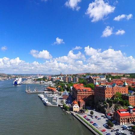 هلسینگبورگ نزدیکترین مکان در سوئد به دانمارک است و یکی از شهرهای دانمارک به صورت واضح از سمت دیگر تنگه قابل مشاهده است. این شهر ظاهر تاریخی خود را حفظ کرده است و ساختمانها و کلیساها و قلعههای قرون وسطی در مرکز آن دیده میشود.
